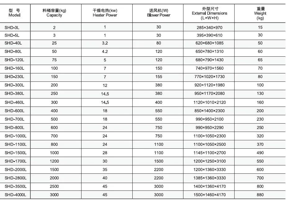 - Hot air down-blowing design ensures the even temperature in the hopper.