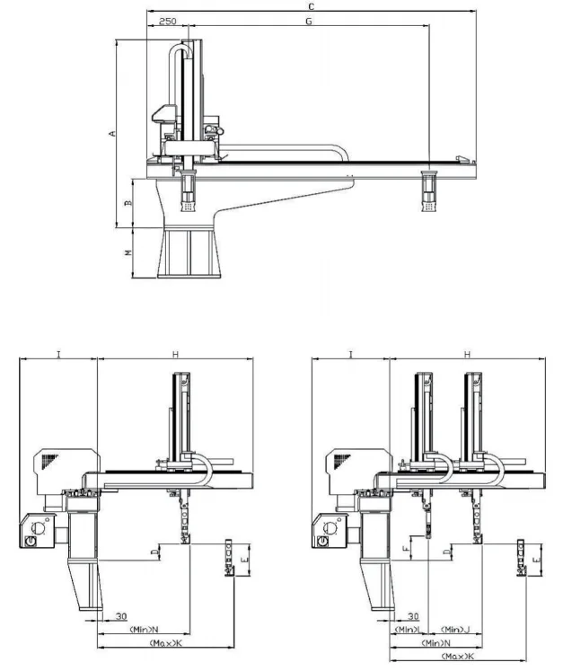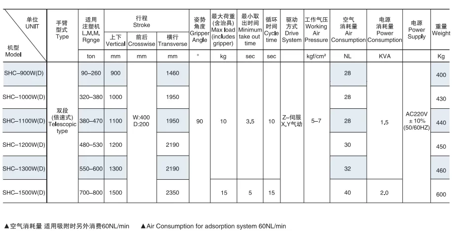 • Take out axis is with single-arm or double-arm model to meet different demands. (D) is a double-arm model.