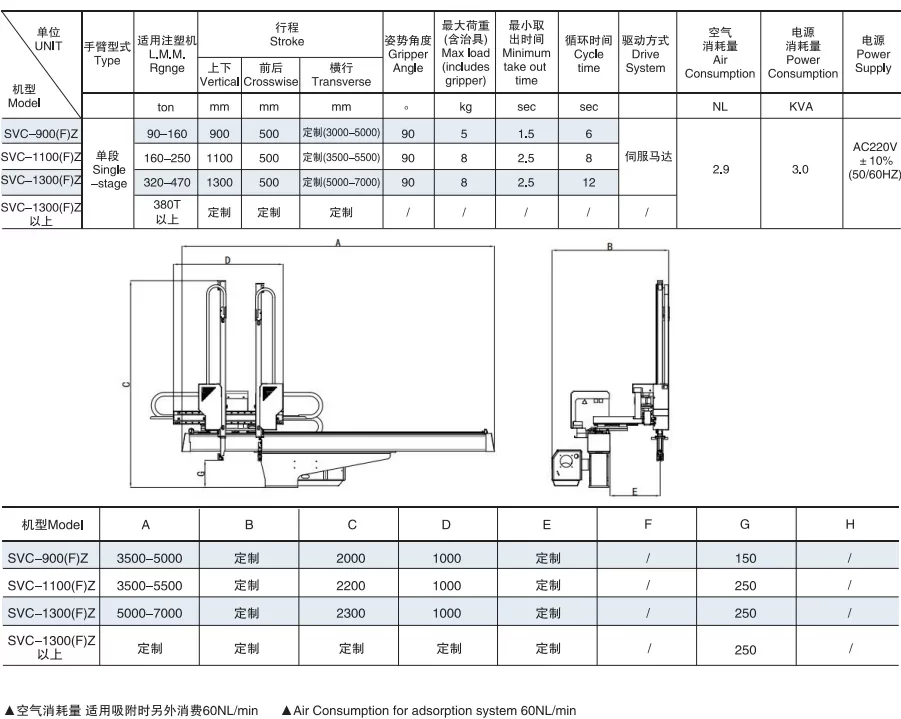 The upper and lower arms use aluminum alloy extrusion beam with light weight and high rigidity, which can achieve fast taking-out, small vibration and high efficiency.